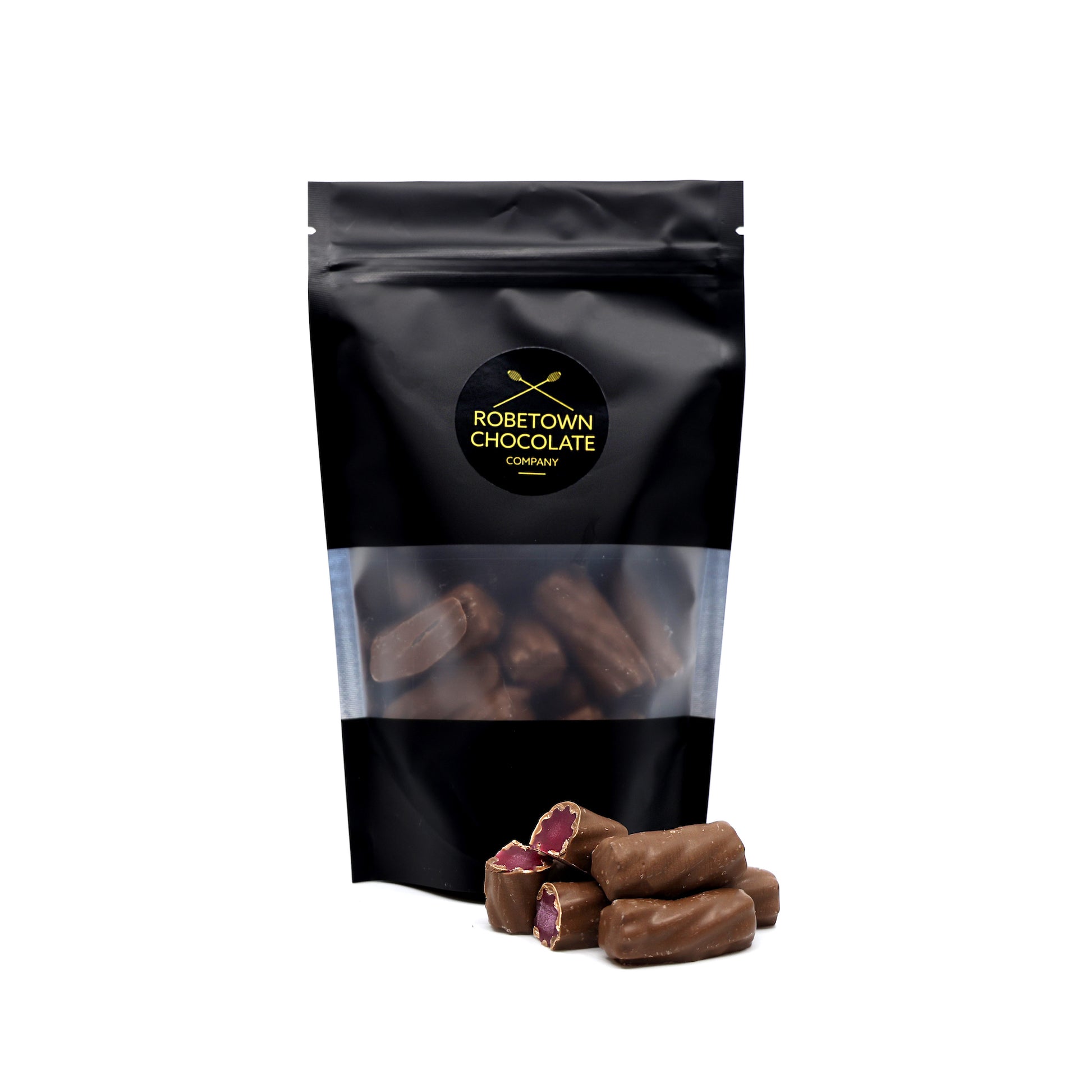 Irresistible Raspberry twists Licorice coated in Milk Chocolate - you won’t be able to put them down.